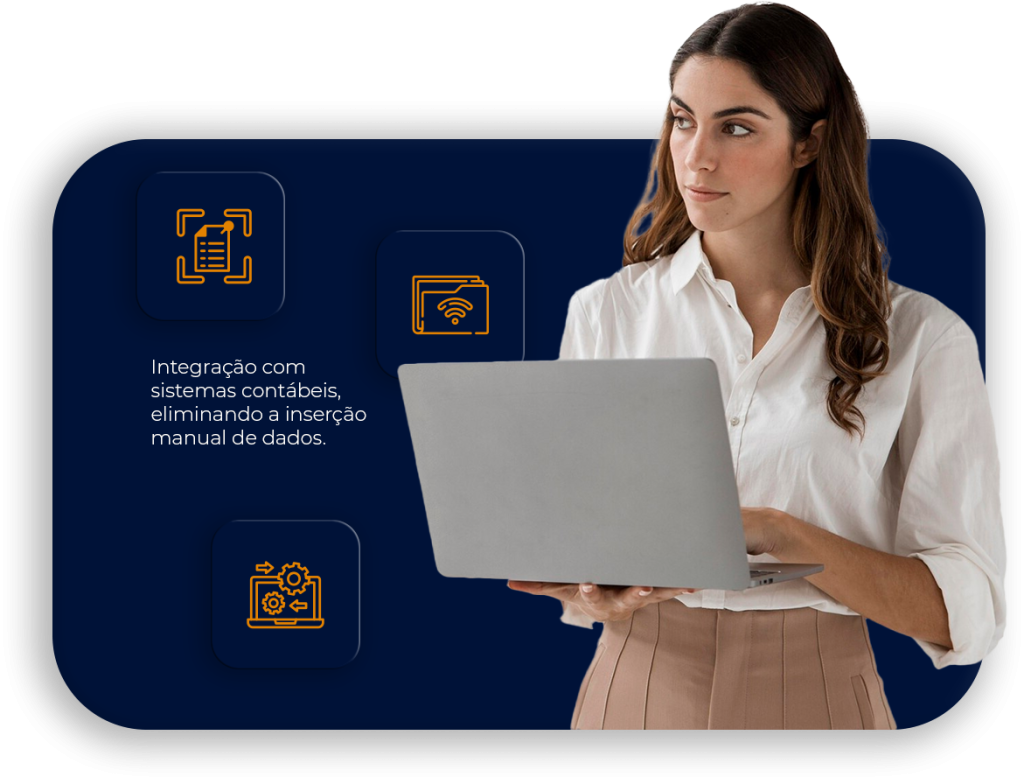 Integração com sistemas contábeis, eliminando a inserção manual de dados.