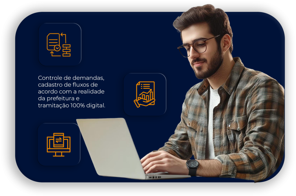 Controle de demandas, cadastro de fluxos de acordo com a realidade da prefeitura e tramitação 100% digital.
